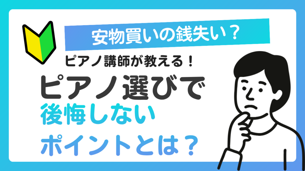 ピアノを選ぶとき、「とにかく安いものでいい」と考えていませんか? もちろん、予算は大切です。しかし、ピアノは単なる「物」ではなく、音楽を奏でるための「相棒」。安価なものを選んだ結果、表現の幅が狭まり、演奏する楽しさが半減してしまうこともあ... -